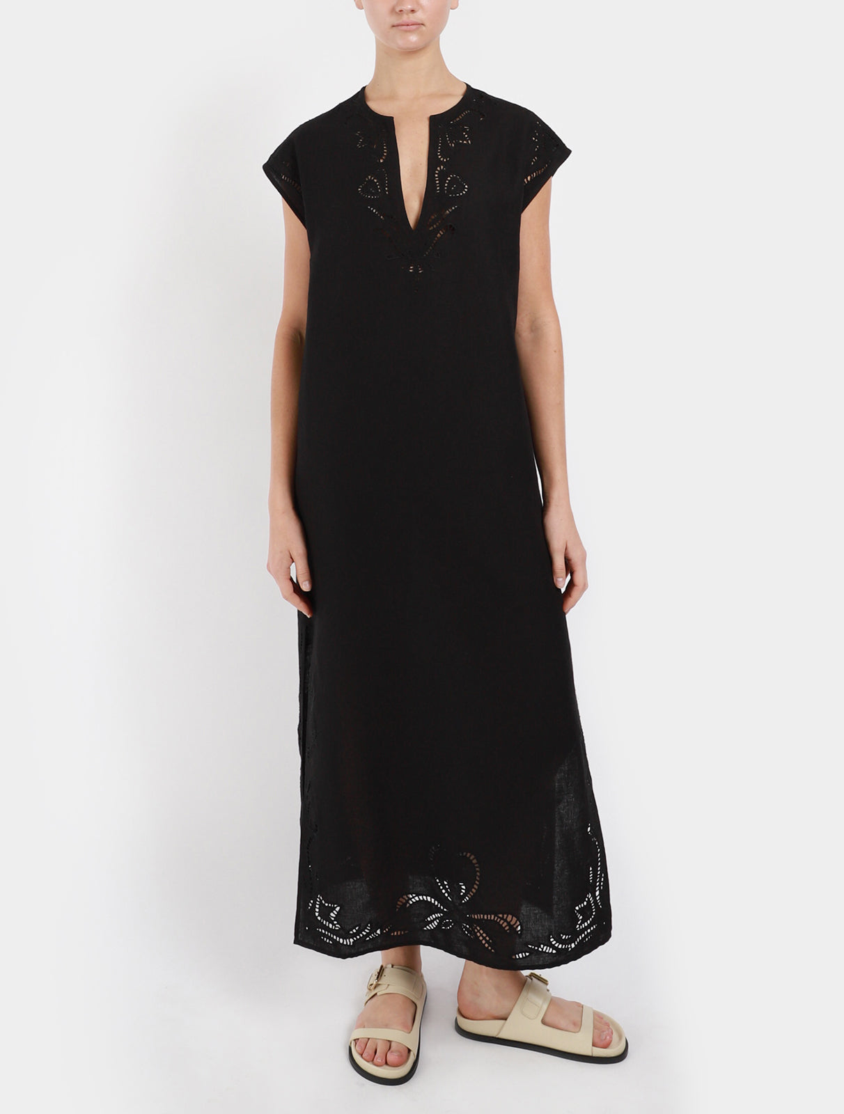 - Detail at neckline, sleeve and hem of caftan