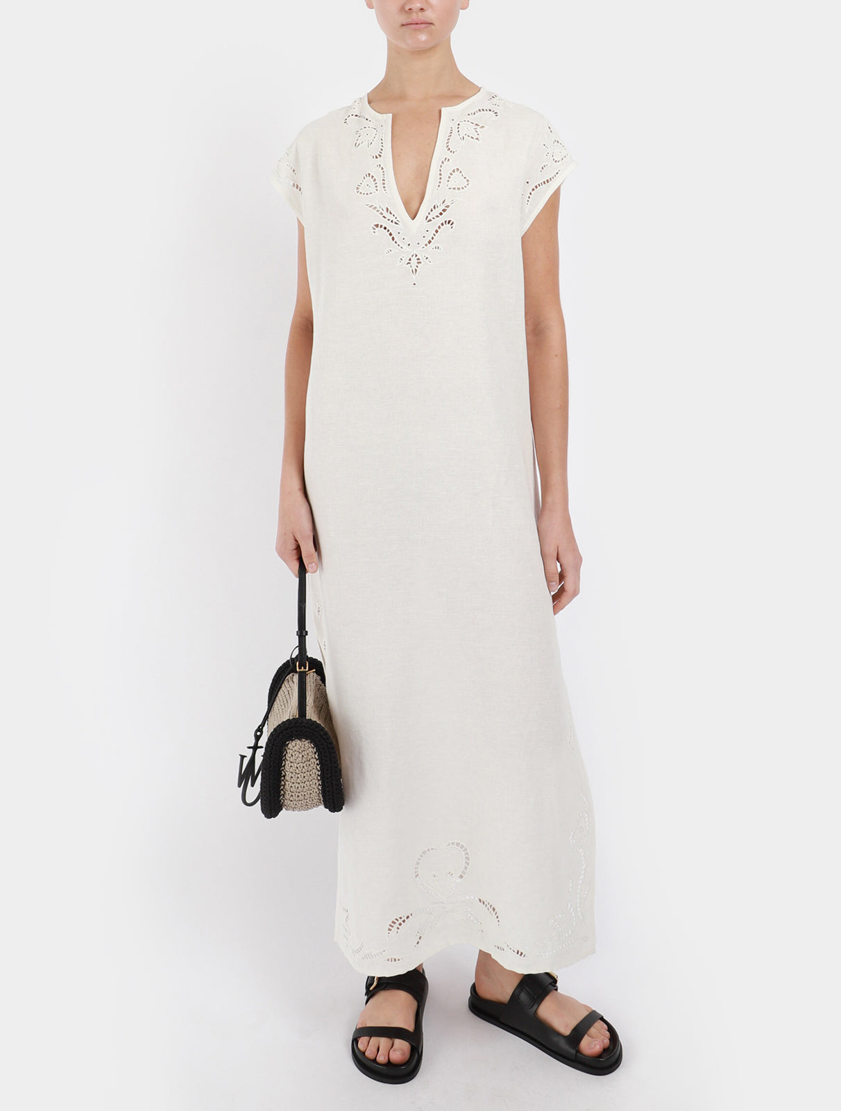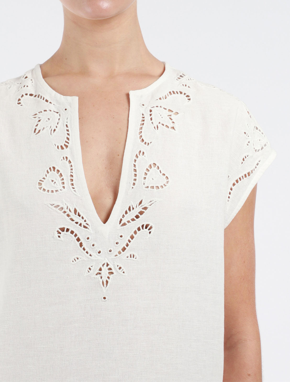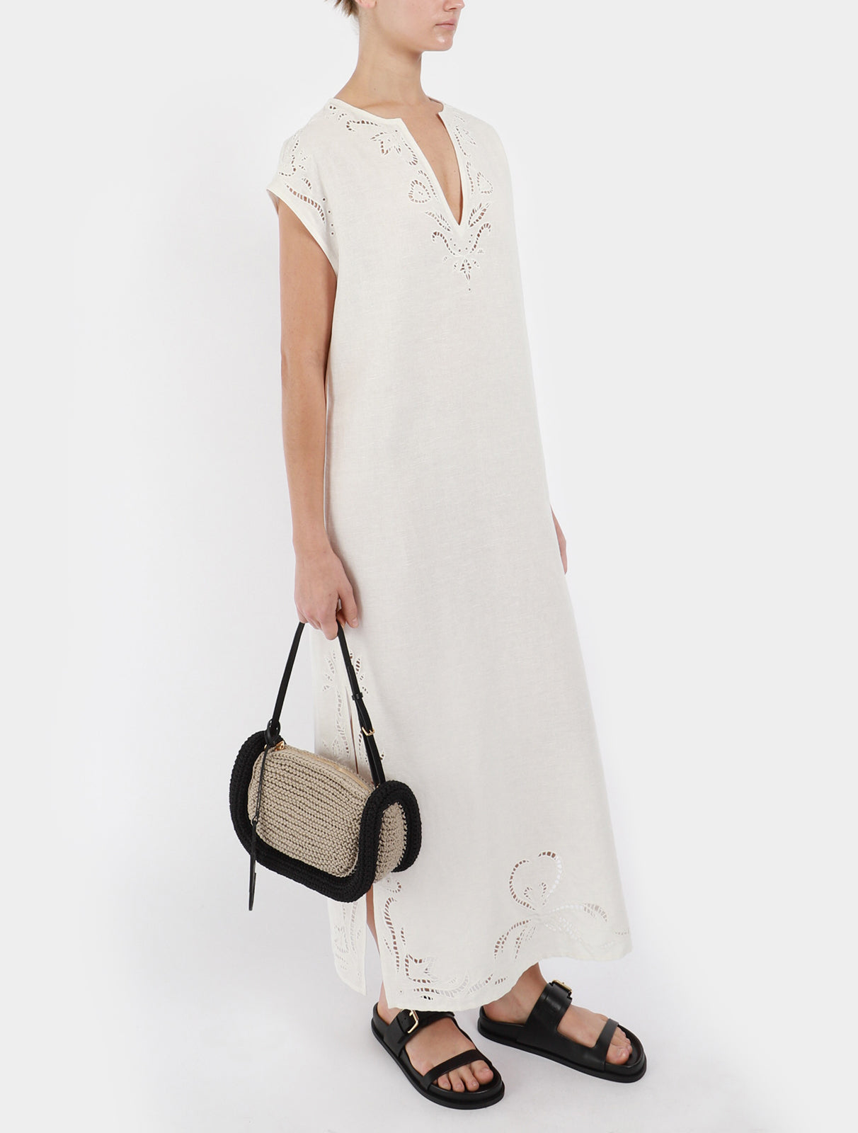 - Detail at neckline, sleeve and hem of caftan