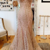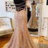 Mermaid V Neck Rose Gold Prom Dress Stunning Evening Dress quantity
