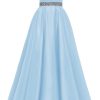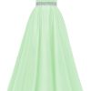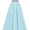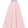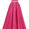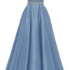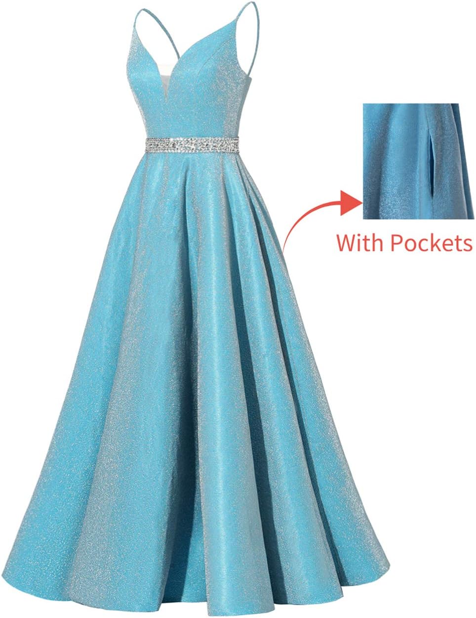 Spaghetti Straps Prom Dress Long Satin Beaded V-Neck Formal Evening Party Ball Gowns with Pockets