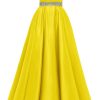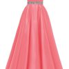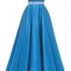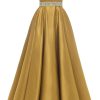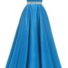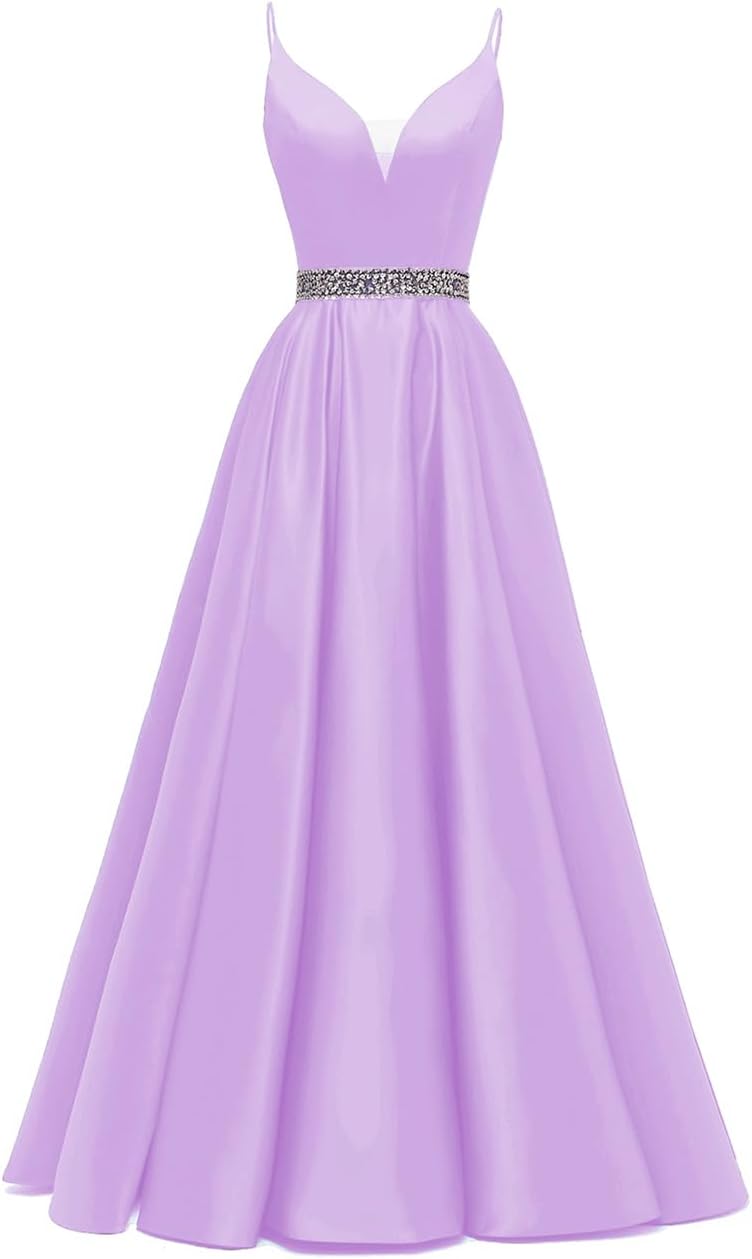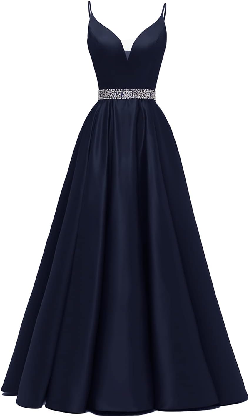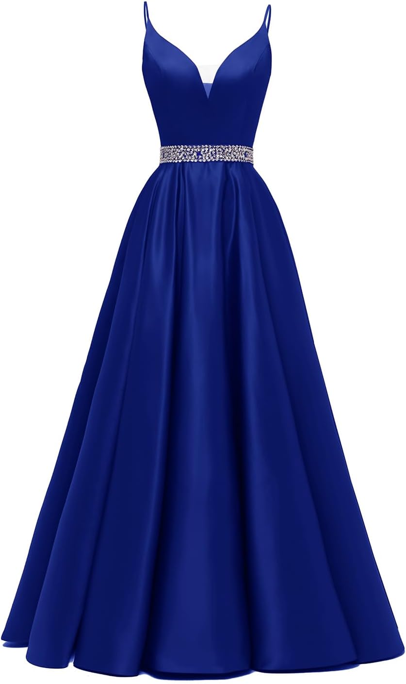 / Spaghetti Straps Prom Dress Long Satin Beaded V-Neck Formal Evening Party Ball Gowns with Pockets