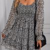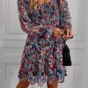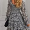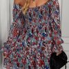 Square Neck Floral Smock Ruffle Long Sleeve Babydoll Dress Mini quantity