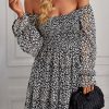 / Square Neck Floral Smock Ruffle Long Sleeve Babydoll Dress Mini