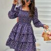 / Square Neck Puff Sleeve Flroal Cute Tiered Flowy Dress Mini