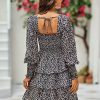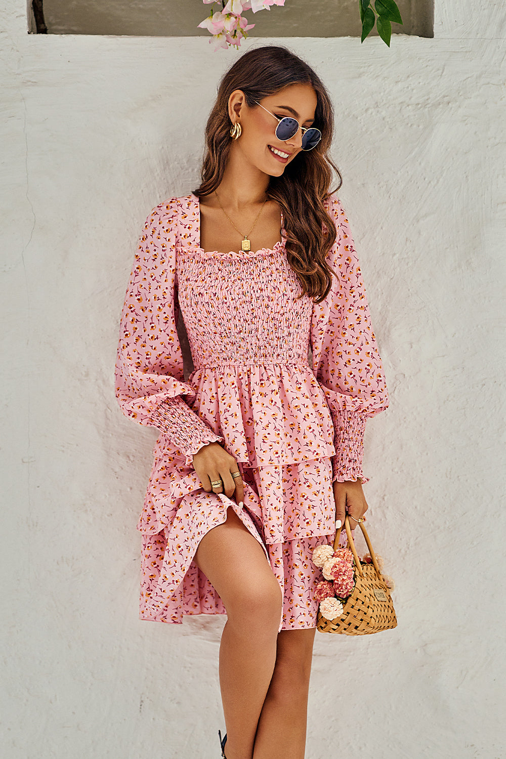Square Neck Puff Sleeve Flroal Cute Tiered Flowy Dress Mini quantity