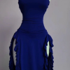 Strapless Midi Length Ruffle Prom Dress Sexy Evening Dress