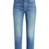Fittedcottonjacket Washed Jeans high-rise straight leg with a button fly and an ankle-length inseam. Cut from semi-rigid SUPERIOR denim, Fittedcottonjacket Washed Jeans is a mid-blue hue with whiskering and fading.