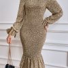 Long Puff Sleeve Floral Midi Bodycon Dress quantity