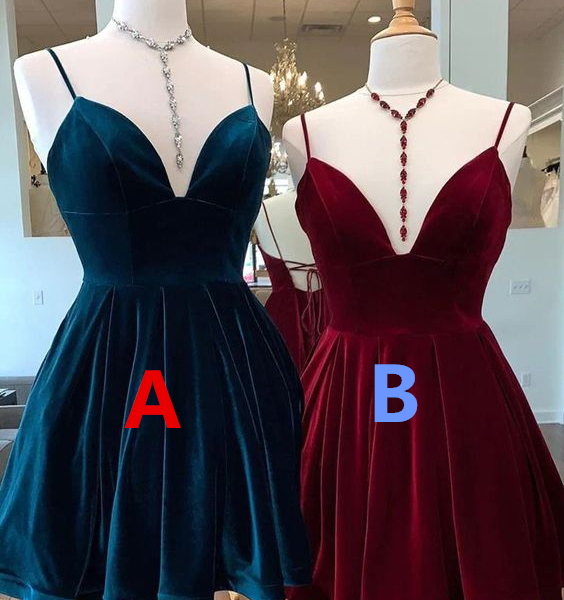 Velvet Homecoming Dress Tie Back Straps Formal Short Prom Dress