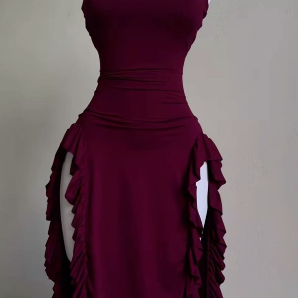 Strapless Midi Length Ruffle Prom Dress Sexy Evening Dress